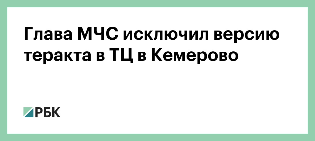 Глава МЧС России Владимир Пучков заявил, что версия теракта в связи с пожаром в торговом центре «Зимняя вишня» в Кемерово не рассматривается, сейчас прорабатываются различные варианты причин трагедии. Об этом сообщает «Сибдепо».