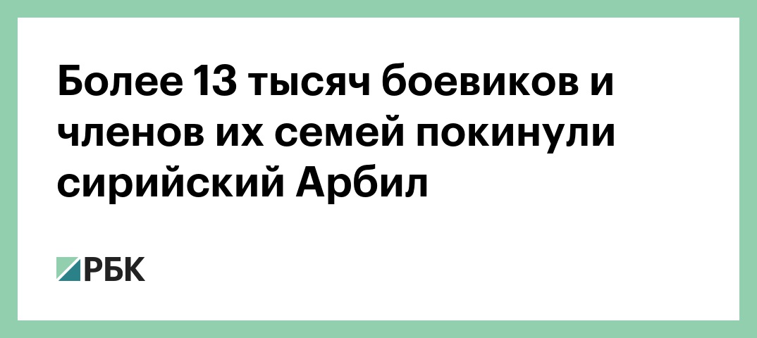 На протяжении всего маршрута их безопасность обеспечивалась сирийской полицией под контролем офицеров российского Центра по примирению и представителей Сирийского Красного полумесяца. Как уточнили в Центре, всего за трое суток из Арбила было выведено более 13 тысяч боевиков и членов их семей.