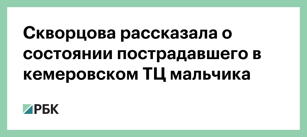 О том, что пострадавший при пожаре в Кемерово 11-летний мальчик пришел в сознание, стало известно днем 27 марта. Утром того же дня Скворцова заявляла, что этот мальчик является самым тяжелым пациентом.