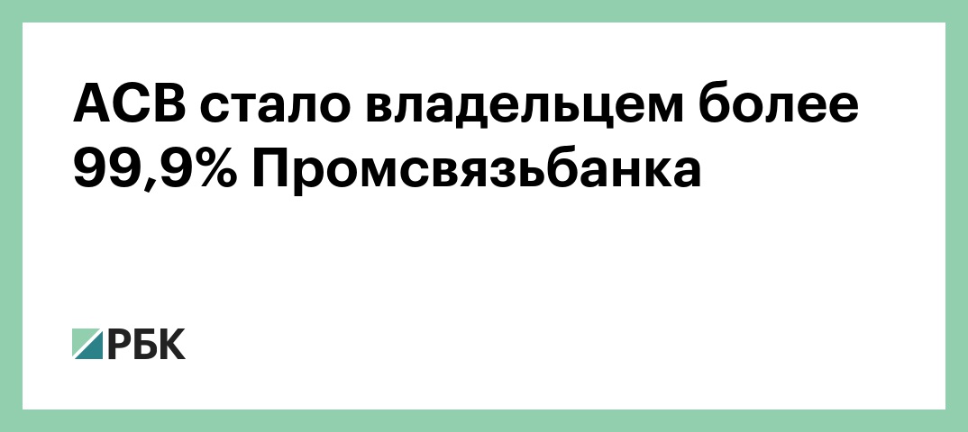 АСВ стало владельцем более 99,9% Промсвязьбанка