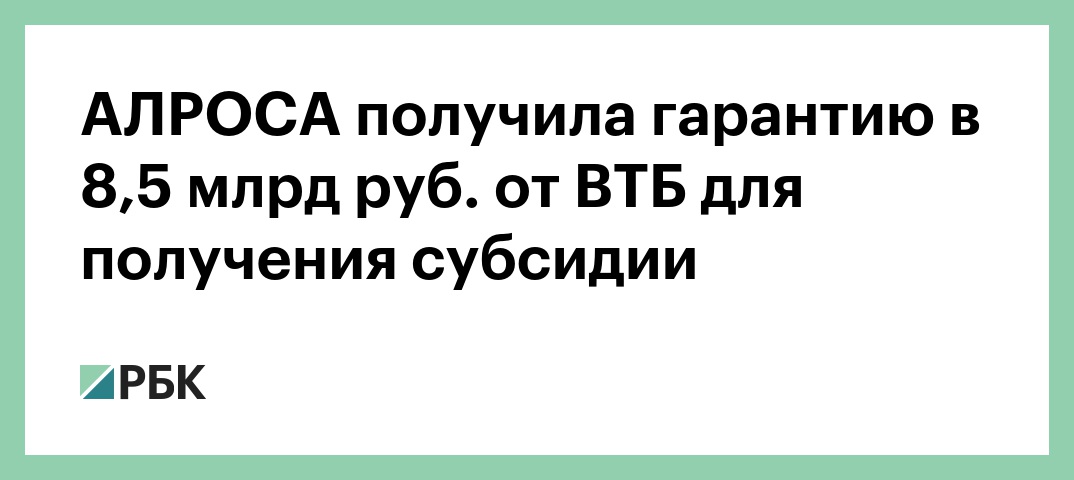 АЛРОСА получила гарантию в 8,5 млрд руб. от ВТБ для получения субсидии
