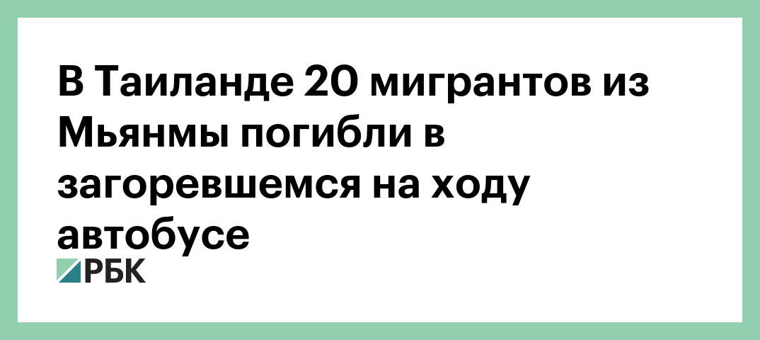 По меньшей мере 20 рабочих-мигрантов из Мьянмы погибли на западе Таиланда в автобусе, который загорелся на ходу, передает Reuters.