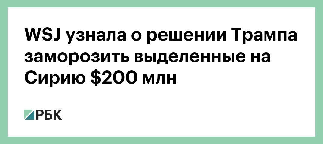 Американский президент Дональд Трамп заморозил выделенные $200 млн на восстановление Сирии. Об этом пишет газета The Wall Street Journal со ссылкой на американских чиновников.