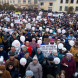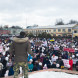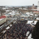 В настоящий момент вся площадь заполнена людьми, люди стоят и через дорогу от нее.
