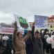 Собравшиеся скандируют: «Закрыть!», также люди держат плакаты: «Воробьев! Тулеев ушел, а ты?», «Путин! Приезжай в наш город, поживи и подыши».