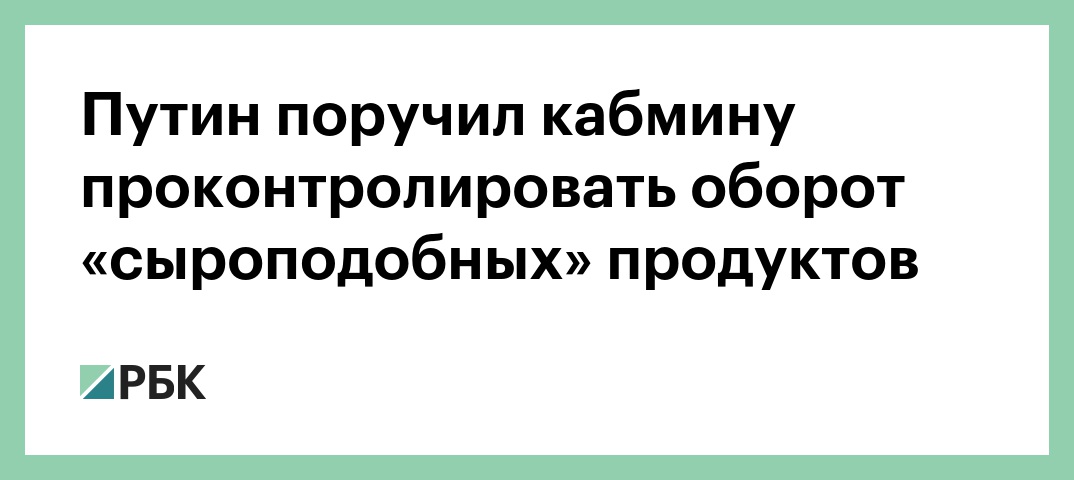 Президент Владимир Путин поручил правительству принять меры по контролю продукции «сыроподобного типа» на территории России. Об этом говорится в перечне поручений президента по итогам рабочей поездки в Краснодарский край, говорится в сообщении на сайте Кремля.