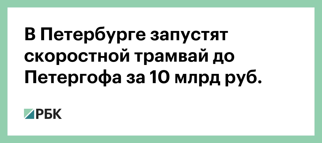 Для строительства скоростной трамвайной сети длиной 20 км до входящего в состав Санкт-Петербурга Петергофа администрация города планирует выбрать инвестора. Затраты на строительство оцениваются в 10,6 млрд руб.