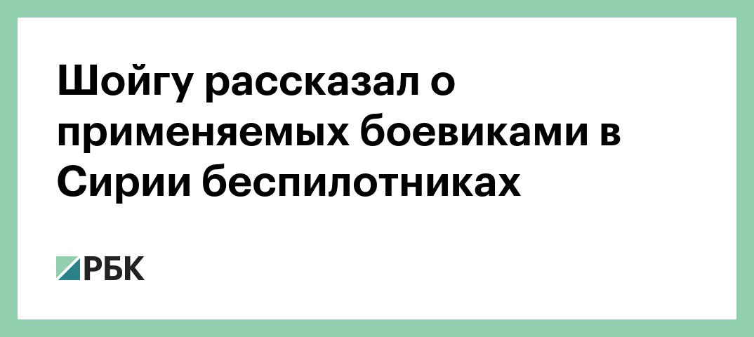 «Беспилотники, применяемые боевиками в Сирии, оснащены боеприпасами и способны действовать на расстоянии свыше 100 км. Их создание невозможно без технического содействия развитых стран. В течение последних трех месяцев мы уничтожили 17 таких аппаратов», — сказал глава военного ведомства.