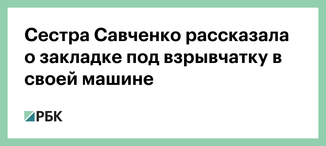 Сестра Савченко рассказала о закладке под взрывчатку в своей машине