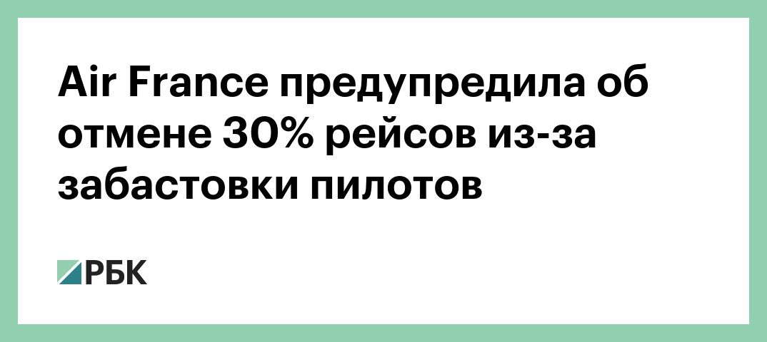 Около 30–35% пилотов Air France в ближайшие дни выйдут на забастовку с требованием повышения зарплат. Об этом РБК сообщил президент профсоюза Альтер Франсуа Аман.
