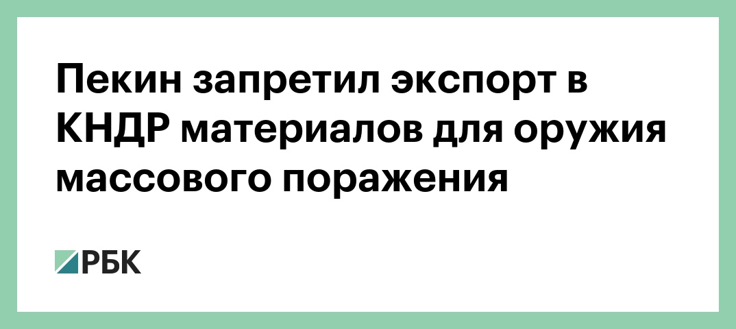 Китай в рамках требований резолюции СБ ООН запретил экспорт в КНДР материалов, которые могут использоваться при изготовлении оружия массового поражения. Об этом говорится в заявлении Министерства коммерции КНР, передает Reuters.