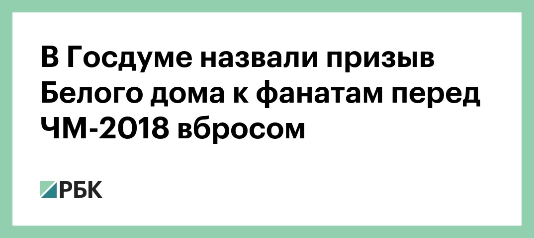 В Госдуме назвали призыв Белого дома к фанатам перед ЧМ-2018 вбросом