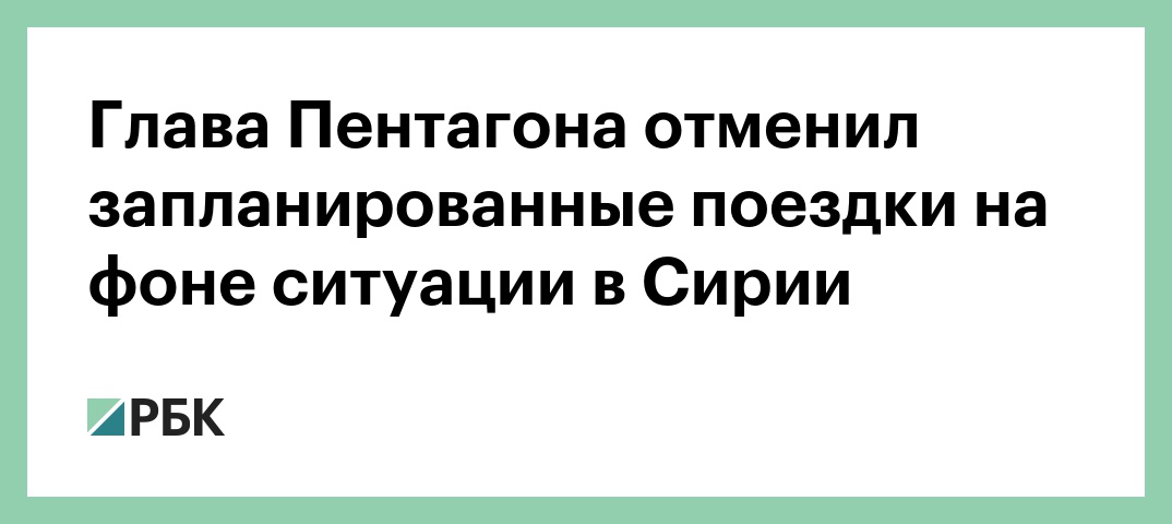 Министр обороны США Джеймс Мэттис отменил выступление 14 апреля на форуме Commonwealth Club в Сан-Франциско на фоне обострения ситуации в Сирии. Об этом говорится в сообщении на сайте форума. Выступление Мэттиса было отменено «из-за изменений планов поездок» министра.