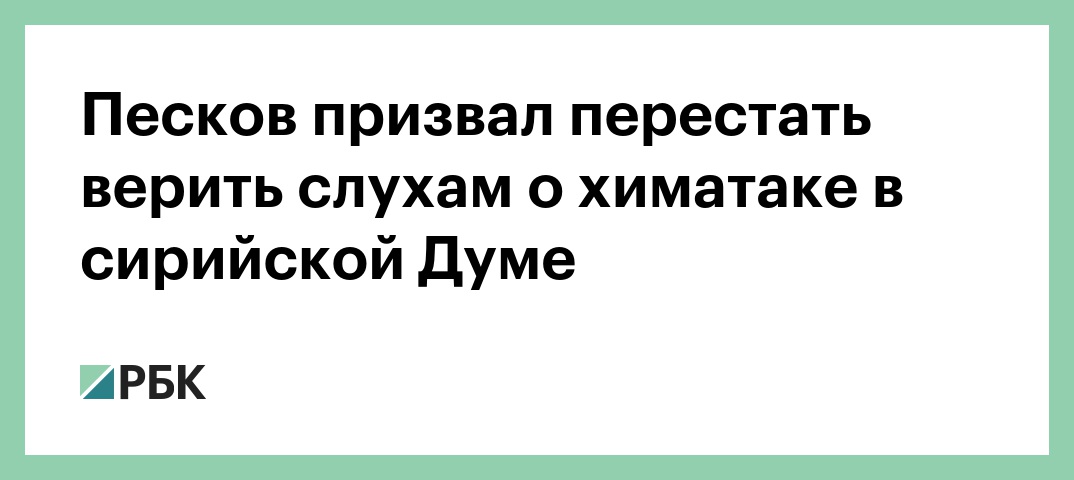 Пресс-секретарь президента России Дмитрий Песков призвал не ориентироваться на сообщения прессы и слухи относительно предположительно совершенной химической атаки в Сирии. Об этом сообщает корреспондент РБК.