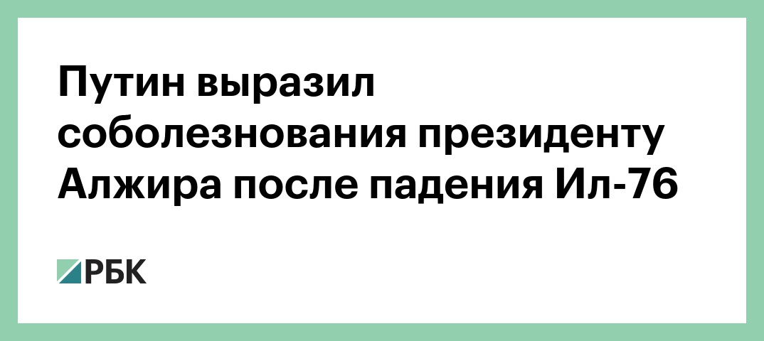 Президент России Владимир Путин выразил соболезнования президенту Алжира Абдельазизу Бутефлике в связи с многочисленными жертвами при падении военно-транспортного самолета Ил-76 около аэропорта Буфарик. Об этом сообщается на сайте Кремля.