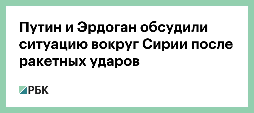 Президент Владимир Путин и его турецкий коллега Реджеп Тайип Эрдоган вечером 14 апреля обсудили по телефону обострившуюся ситуацию вокруг Сирии после ракетных ударов США, Британии и Франции. Об этом говорится в сообщении на сайте президента России.
