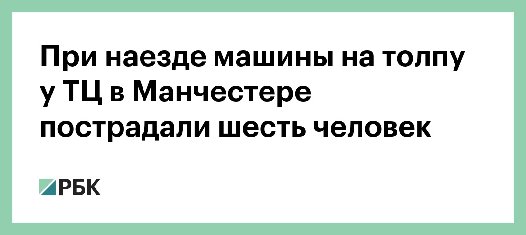 В Манчестере в результате наезда на толпу около торгового центра пострадали не менее шести человек. Об этом сообщает Мanchester Evening News.