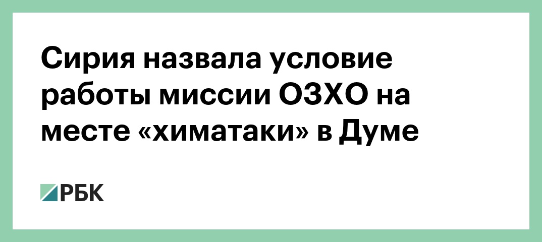 Сирия назвала условие работы миссии ОЗХО на месте «химатаки» в Думе