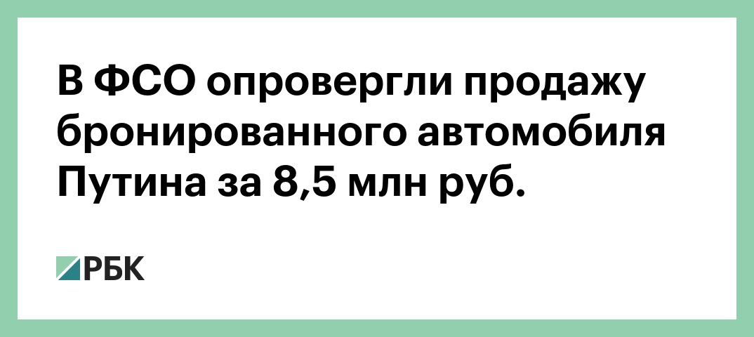 В ФСО опровергли продажу бронированного автомобиля Путина за 8,5 млн руб.