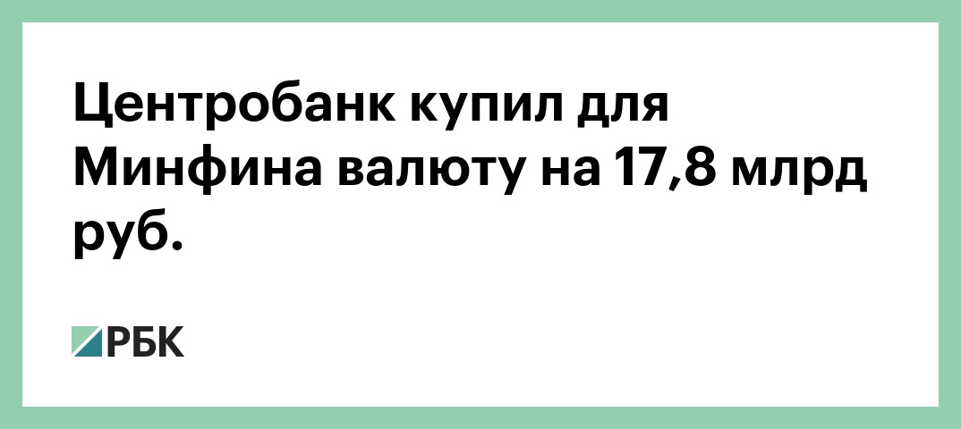 Центробанк купил для Минфина валюту на 17,8 млрд руб.