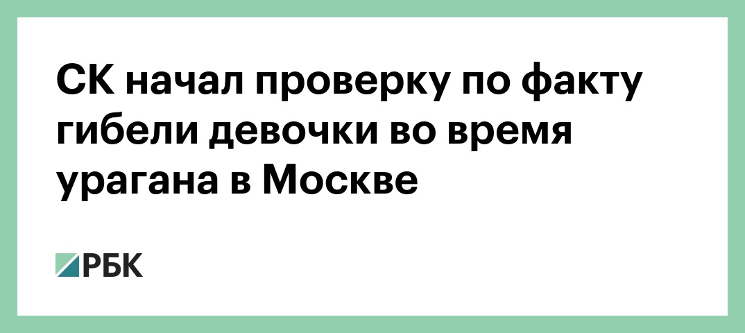 СК начал проверку по факту гибели девочки во время урагана в Москве