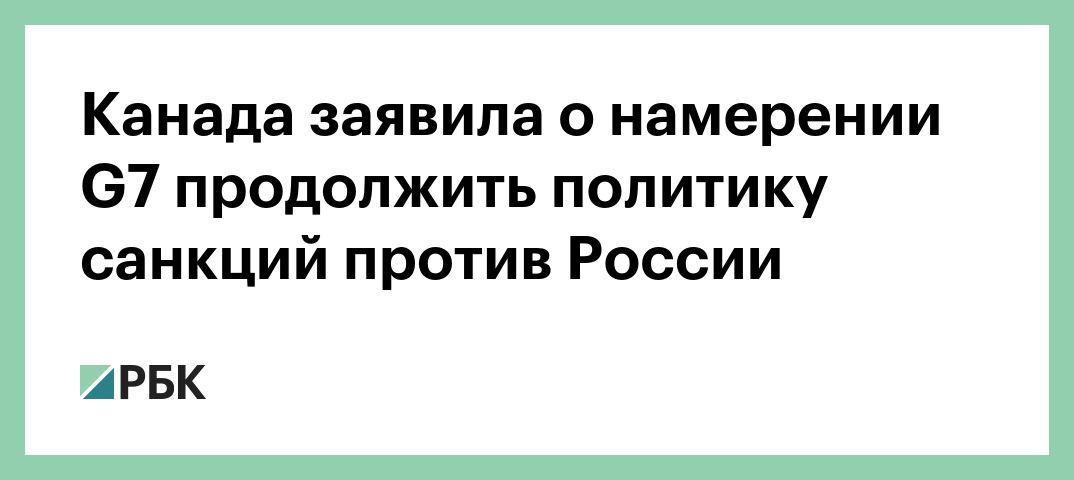 «Министр [иностранных дел Канады Христя] Фриланд и другие главы МИД стран «Большой семерки» подтвердили общую приверженность уважению норм международного права, в том числе в отношении территориальной целостности. Санкции, которые были введены против России после ее неприемлемых действий на Украине, будут продолжаться», — говорится в сообщении.