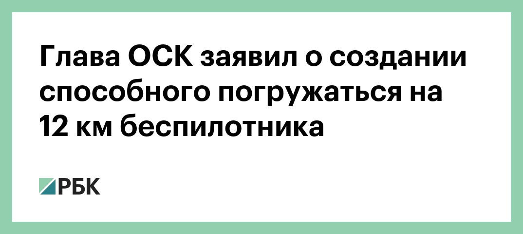 Президент Объединенной судостроительной корпорации (ОСК) Алексей Рахманов рассказал, что в течение двух лет в России создадут беспилотный подводный аппарат, который будет способен погружаться на глубину 12 км. Об этом он сообщил в эфире радиостанции «Эхо Москвы», передает «РИА Новости».
