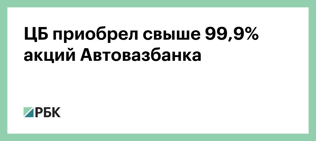 ЦБ приобрел свыше 99,9% акций Автовазбанка