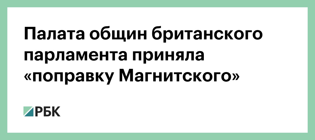 «Поправка Магнитского» позволит правительству Великобритании отказывать в визах и въезде в страну лицам, которые обвиняются в грубых нарушениях прав человека и коррупции. Поправку к закону «О санкциях и борьбе с отмыванием денег» приняли без голосования, поскольку ее поддержали Лейбористская и Консервативная партии, отмечает агентство.