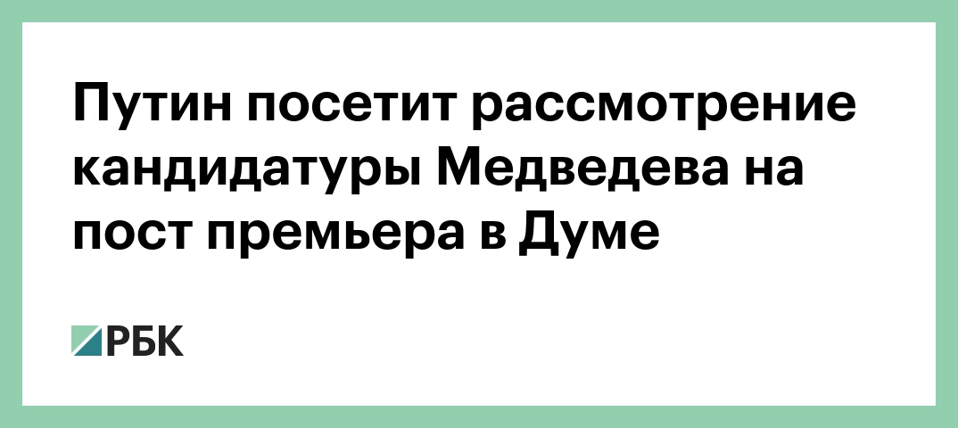 Путин посетит рассмотрение кандидатуры Медведева на пост премьера в Думе
