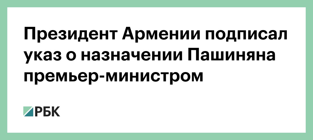 Президент Армении Армен Саркисян подписал указ о назначении Никола Пашиняна премьер-министром. Документ опубликован на сайте главы государства.
