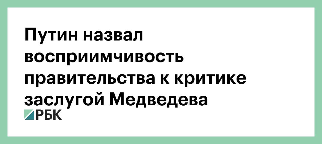Президент России Владимир Путин заявил, что восприимчивость старого кабмина к конструктивной критике и содержательным предложениям является одной из заслуг премьера Дмитрия Медведева. Об этом глава государства заявил на пленарном заседании Госдумы, трансляцию которого ведет телеканал «Россия 24».