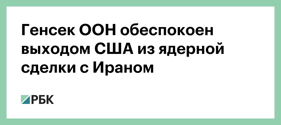 Генеральный секретарь ООН Антониу Гутерриш заявил, что глубоко обеспокоен выходом США из ядерного соглашения по Ирану, и призвал другие страны предпринять усилия по поддержанию сделки, говорится в его заявлении, опубликованном на сайте ООН.