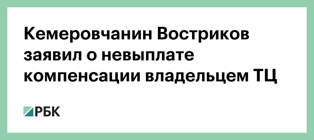 Кемеровчанин Востриков заявил о невыплате компенсации владельцем ТЦ