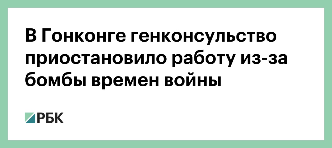 В Гонконге была приостановлена работа российского генерального консульства из-за обнаружения бомбы времен Второй мировой войны в районе Ван-Чай. Об этом сообщается в Facebook российского дипломатического представительства.