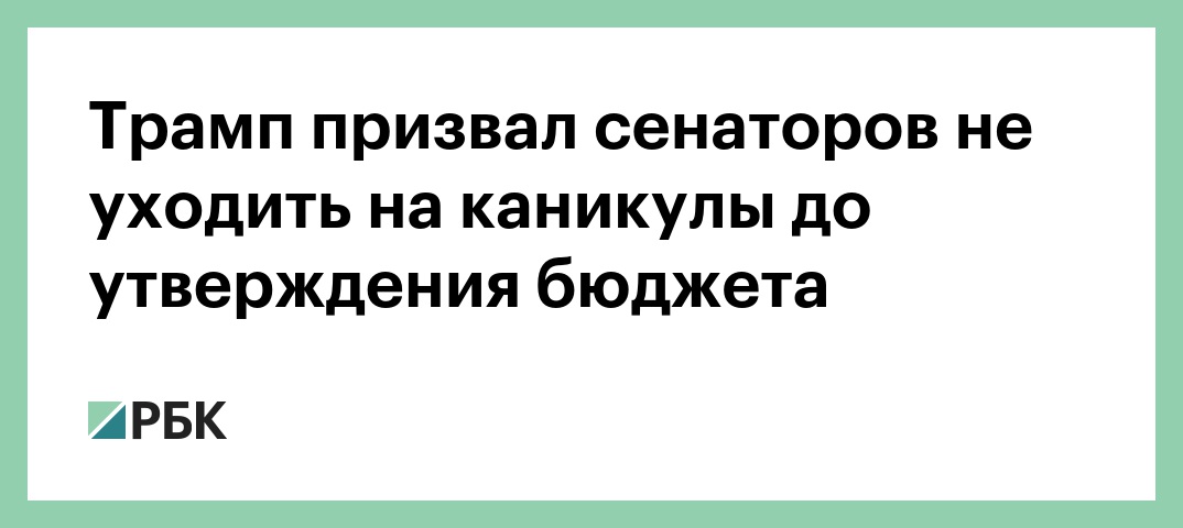 Президент США Дональд Трамп заявил, что американским сенаторам не стоит уходить на каникулы до утверждения бюджета на следующий финансовый год (начинается с 1 октября). Об этом он написал в своем Twitter.