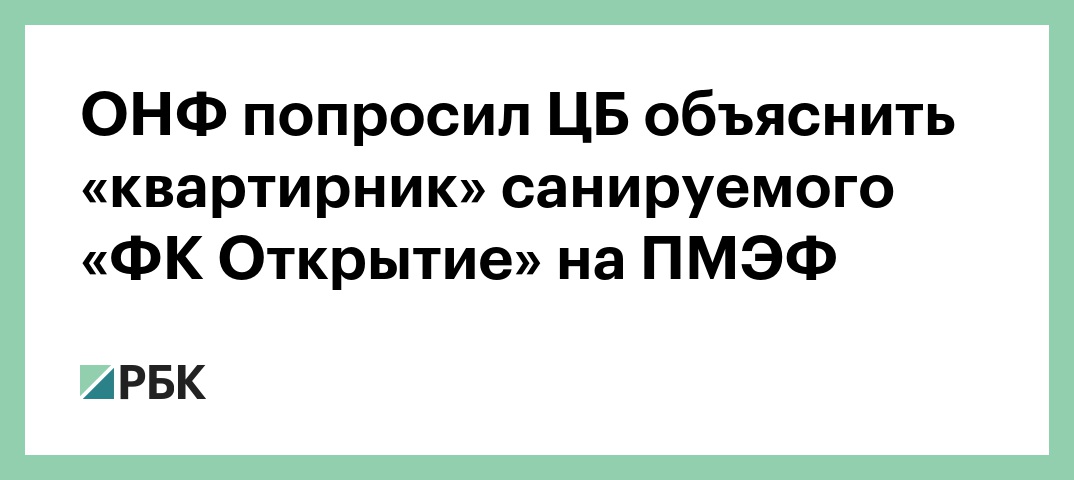 В Общероссийском народном фронте (ОНФ) просят ЦБ прокомментировать информацию о том, что санируемый банк «ФК Открытие» проведет на Петербургском международном экономическом форуме (ПМЭФ) вечеринку — «квартирник» с участием музыкантов. Об этом говорится в сообщении на сайте ОНФ.