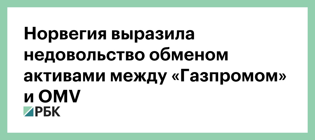 Норвегия недовольна сделкой по обмену активами между австрийской OMV и «Газпромом», в результате которой российская компания получит норвежские активы OMV. Об этом заявил министр нефти страны Терье Совкинес, сообщает Reuters.