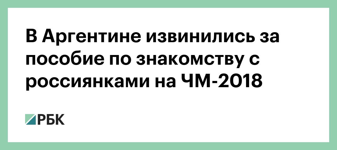 Ассоциация футбола Аргентины (AFA) извинилась за буклет, в котором содержались рекомендации по знакомству с русскими девушками на чемпионате мира-2018. В заявлении, опубликованном на сайте AFA, говорится, что часть справочника была напечатана «ошибочно». О какой именно ошибке идет речь, в сообщении ассоциации не уточняется.