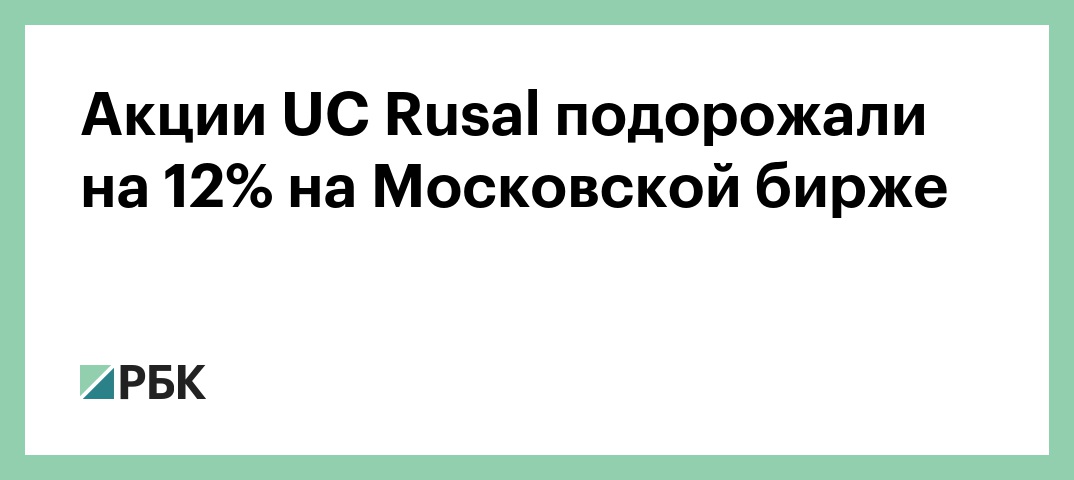 Акции UС Rusal на Московской бирже подскочили в цене на 12% — до 27,34 руб. за бумагу, свидетельствуют данные торгов.