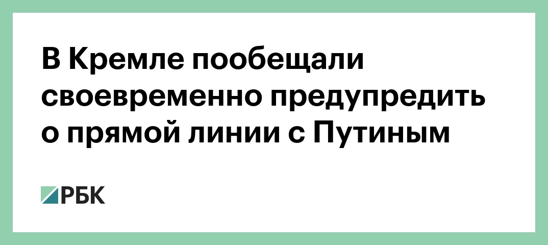 В Кремле пока не называют дату очередной прямой линии с Владимиром Путиным. «Мы сделаем своевременное сообщение по прямой линии, когда придет время», — сказал журналистам пресс-секретарь президента Дмитрий Песков, сообщает корреспондент РБК.