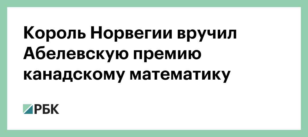 Профессор принстонского Института перспективных исследований, канадский математик Роберт Ленглендс получил из рук короля Норвегии Харальда V Абелевскую премию — престижную награду в области математики. Об этом сообщает Aftenposten.