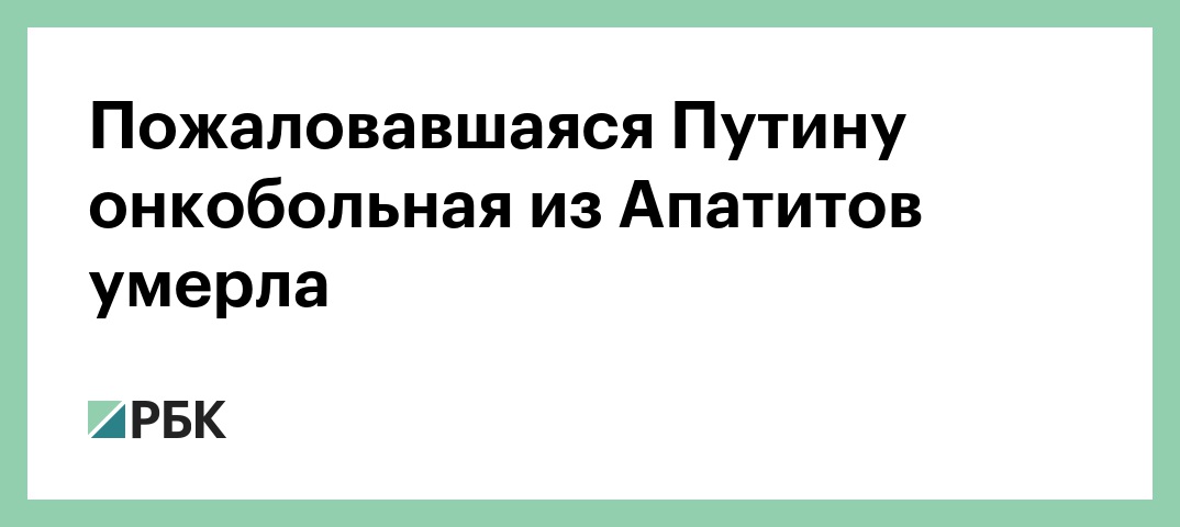 Пожаловавшаяся Путину онкобольная из Апатитов умерла