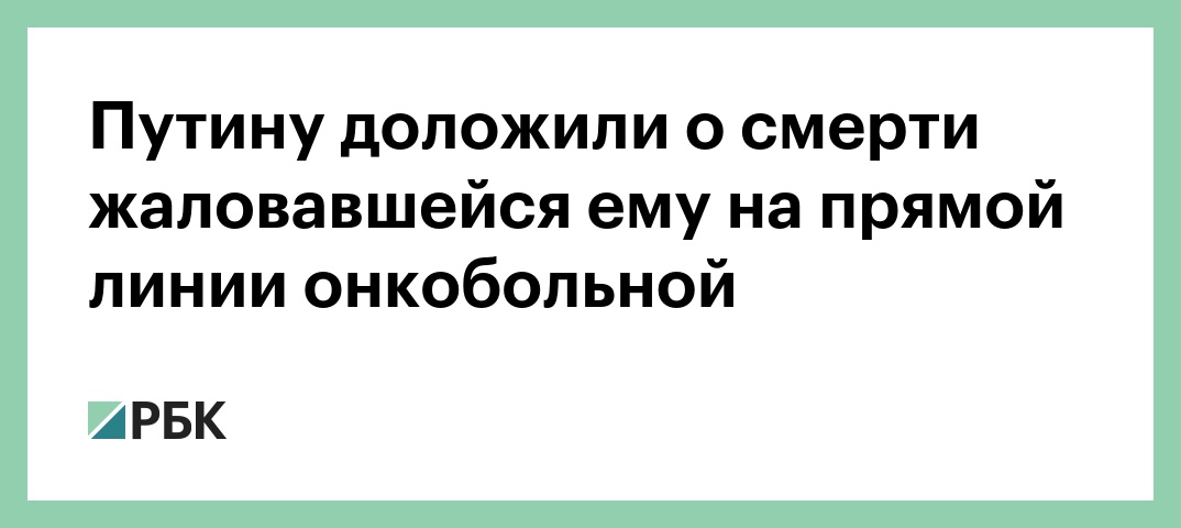 Путину доложили о смерти жаловавшейся ему на прямой линии онкобольной