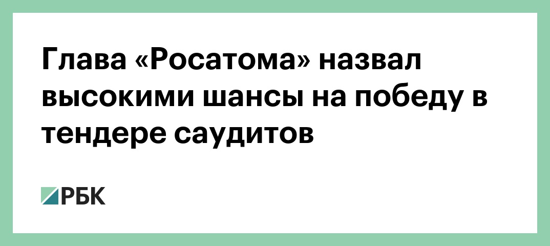 Глава «Росатома» Алексей Лихачев оценил как высокие шансы госкорпорации на победу в тендере Саудовской Аравии на строительство АЭС в стране. В беседе с корреспондентом РБК на Петербургском международном экономическом форуме (ПМЭФ) Лихачев заявил, что «Росатом», ранее подавший заявку на тендер по строительству двух энергоблоков в Саудовской Аравии, рассчитывает в них победить.