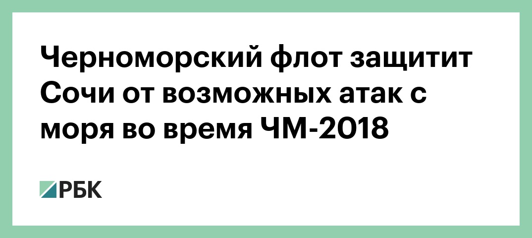 Корабли Черноморского флота ВМФ России будут обеспечивать безопасность Сочи во время проведения игр чемпионата мира по футболу. Корабли ЧФ выдвинулись в зону патрулирования для защиты города от возможных атак с моря, пишет газета «Известия».