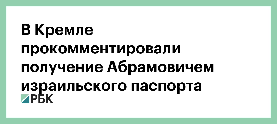 В Кремле прокомментировали информацию о том, что бизнесмен Роман Абрамович получил израильский паспорт. Об этом заявил пресс-секретарь президента России Дмитрий Песков, передает корреспондент РБК.