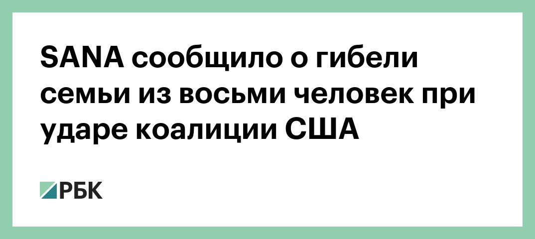 На северо-востоке Сирии в результате авиаудара коалиции, возглавляемой США, погибла семья из восьми человек. Об этом сообщает государственное сирийское агентство SANA.