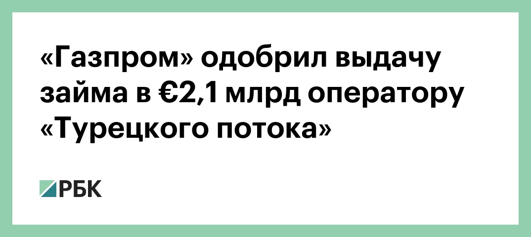 Совет директоров «Газпрома» одобрил выдачу компании South Stream Transport B.V., оператору строительства «Турецкого потока», займа в размере €2,1 млрд. Об этом сообщается на сайте Центра раскрытия корпоративной информации.