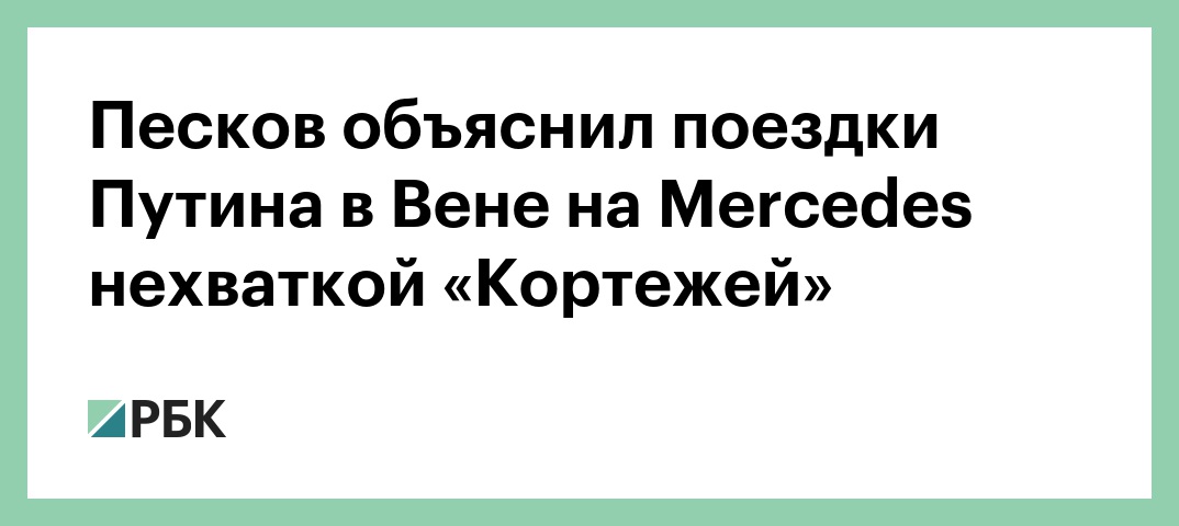 Владимир Путин использовал во время поездок по Вене Mercedes, а не лимузин проекта «Кортеж», потому что в президентском гараже пока недостаточно этих машин, чтобы использовать их как в России, так и за рубежом. Об этом заявил пресс-секретарь президента Дмитрий Песков.